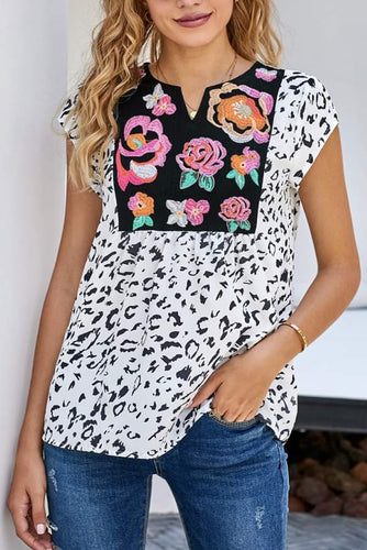 Floral Embroidered Leopard Top